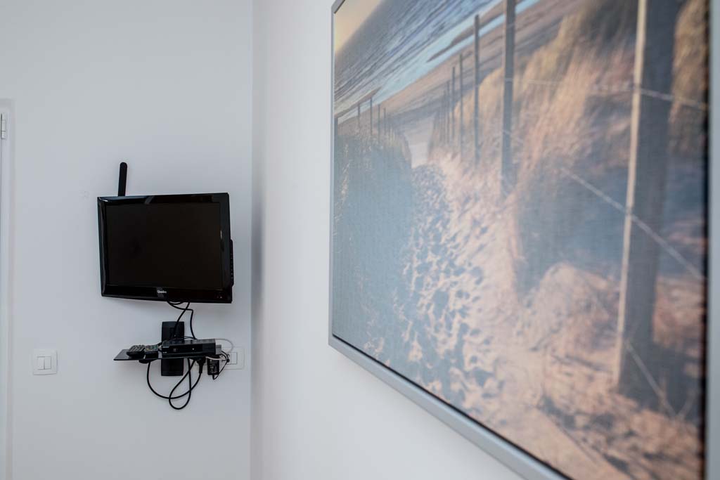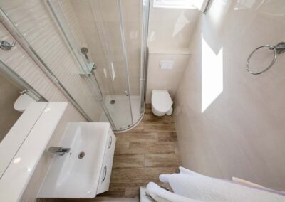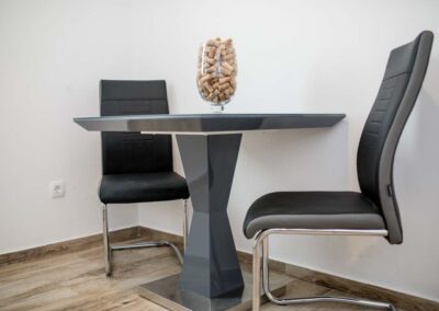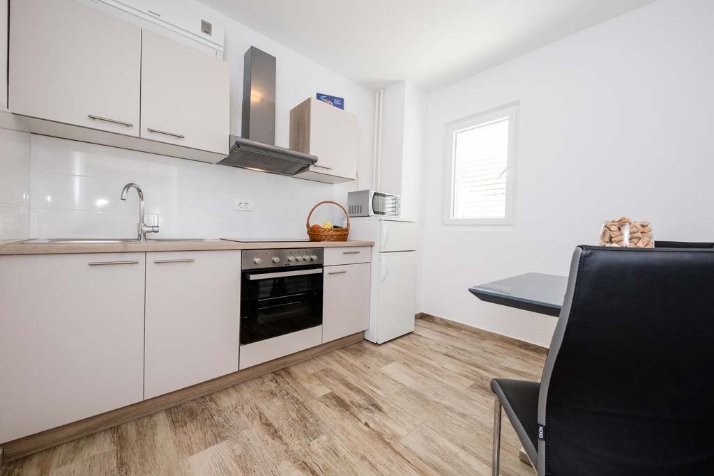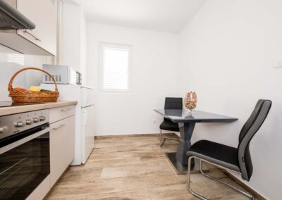 – 1 kupaonica – Dnevni boravak s stolom za blagovanje (hladnjak, aparat za kavu, elektriČni štednjak, mikrovalna pećnica, kuhalo za vodu, posuđe i pribor za jelo)